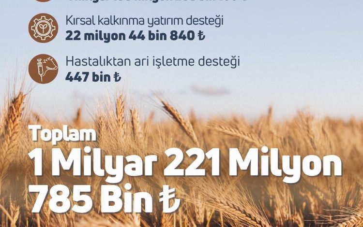 Bakan Yumaklı, paylaşımında destekleme ödemelerinin 1 milyar 199 milyon 293 bin lirası Hububat-baklagil ve dane mısır fark ödemesi desteği, 22 milyon 44 bin lirası Kırkal kalkınma yatırım desteği, 447 bin lirası Hastalıktan ari işletme desteği olmak üzere toplam 1 milyar 221 milyon 785 bin lira olarak yapılacağını kaydetti.