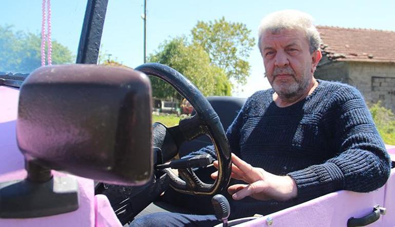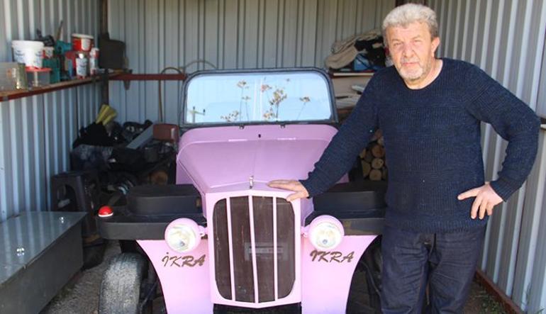 Kandıra ilçesi kırsal Ağaçağıl Mahallesi’nde yaşayan, evli ve 2 çocuk babası emekli kaporta ustası Ramazan Şentürk, çocukluk hayalini pandemi periyodunda gerçekleştirdi. Şentürk, 3 metre 15 santim uzunluğunda, 1 metre 6 santim genişliğinde, 30-40 kilometre sürat yapabilen arabası, çapa makinesi motoru kullanarak 15 günde yaptığını söyledi. Aracına, Arapça ‘Oku’ manasına gelen ‘İkra’ ismini veren Şentürk, pembeye boyadığı klasik görünümlü arabayla yıllarca torununu gezdirmeyi hayal ettiğini söyledi.