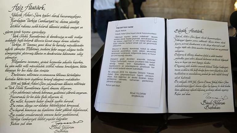 Zeynep Dilara Akyürek / Milliyet.com.tr – Her özel günde, Anıtkabir’e giden siyasalların tarihe not düştüğü sayfalarda büyüleyici yazılar görülüyor. Pek çok kişinin, altında imzası olan kişi tarafından yazıldığını sandığı bu sanatsal yazı sanatının ismi kaligrafi. Cumhurbaşkanları, başbakanlar, bakanlar ve milletvekillerinin altına imzasını attığı bu yazılarla süslenen Anıtkabir Özel Defteri’nde ise aslında yıllarca ustalıkla kaligrafi yapan sanatkarların emekleri var. Kaligrafi, Latin harflerinin, kesik uçlu kalemler ve mürekkep kullanılarak kağıt ve değişik gereçler üzerine estetik bir formda işlenmesi olarak tanımlanıyor. Son olarak 19 Mayıs’ta Gençlik ve Spor Bakanı Osman Aşkın Bak tarafından imzalanan kaligrafik yazı, yıllardır ihtimamla süslenen defterin kaligrafları hakkında meraklı soruları beraberinde getirdi. Birileri saatlerce, büyük emeklerle, yılların kazandırdığı ustalığı o deftere döküyordu. Hayranlık uyandıran bu yazıların gerisindeki isimlerden Hattat, Kaligraf ve Kültür Bakanlığı jürilerinden Fahri Deniz, eski başbakan Binali Yıldırım’dan bugünkü Etraf Şehircilik ve İklim Değişikliği Bakanı Murat Kurum’un imzasıyla tamamlanan yazılarının kıssasını ve sırrını Milliyet.com.tr’ye anlattı.