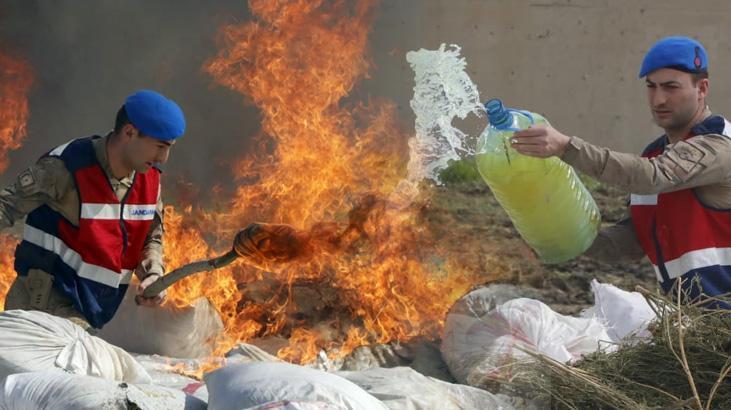 Piyasa pahası 10 milyar lirayı bulan uyuşturucu hususlar Diyarbakır Valiliği’nce oluşturulan heyet huzurunda Lice İlçe Jandarma Komutanlığı uyuşturucu unsur imha alanında yakılarak imha edildi. Uyuşturucu hususların imhası için 200 litre mazot kullanıldı.