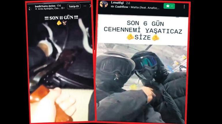 Şüphelilerin ‘Bedirhan K.’, ‘I.mstfql’ ve ‘Promes’ kullanıcı isimleriyle gönderdikleri bildirilerde ‘Son 6 gün cehennemi yaşatacağız size’, ‘Bıçağı sapladığım üzere seni de Ahmet’in yanına yallah’ bildirisi, ‘Yakında o denli şeyler yapacağız ki bunlar insan mı diye kuşkulanacaksınız’, ‘Soğuk bir gece, gözü dönmüş iki kişi ve alınacak tonla intikam’ sözlerini kullandığı ve katil zanlısı B.B. ile fotoğraf paylaştıkları tespit edildi.