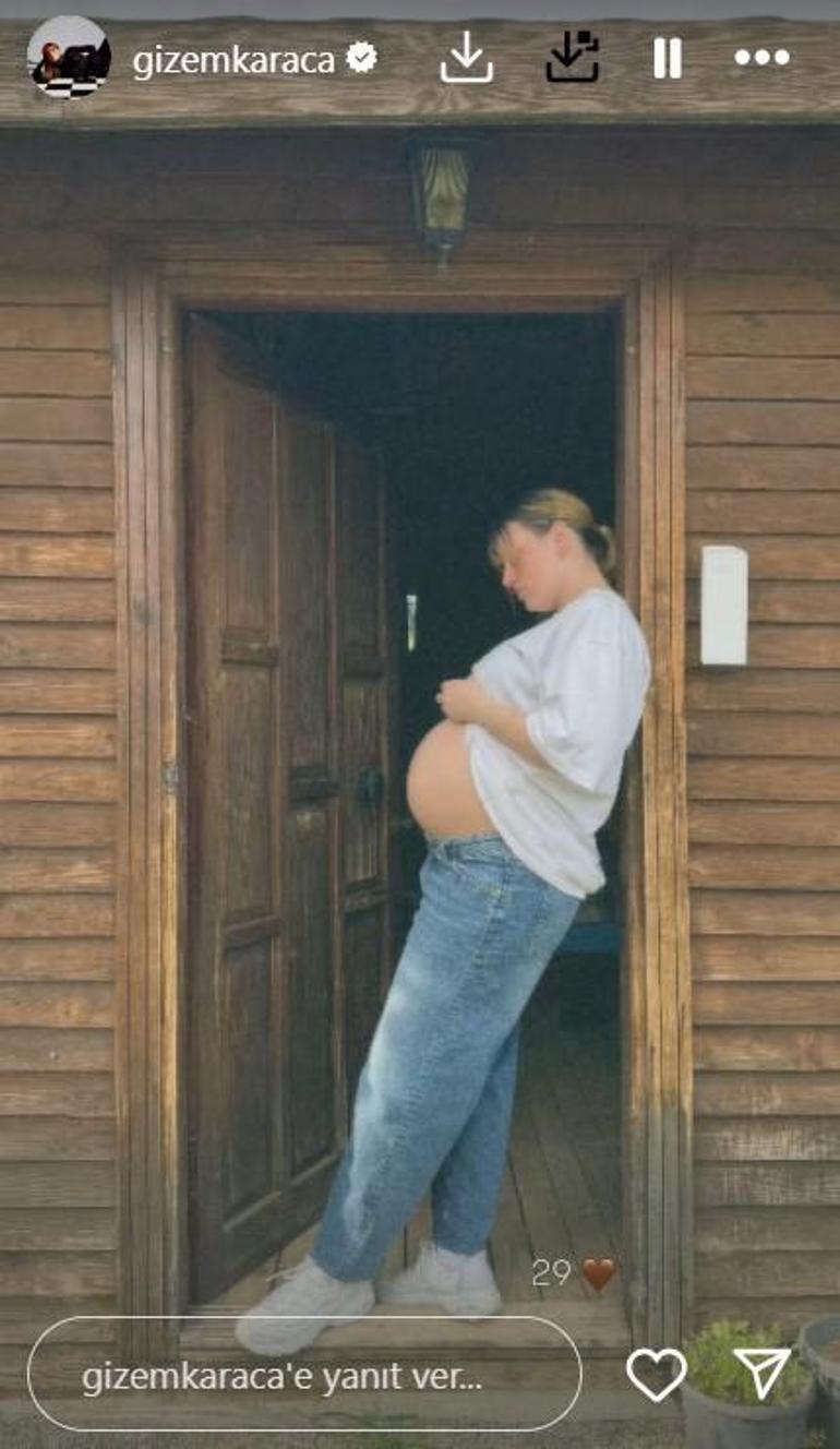 Hamilelik sürecini toplumsal medya hesabından takipçileriyle paylaşan Karaca, bu defa 29’uncu haftadan yeni kareler yayınladı. Karnı uygunca barizleşen oyuncu, paylaşıma ’29’ notunu düştü.