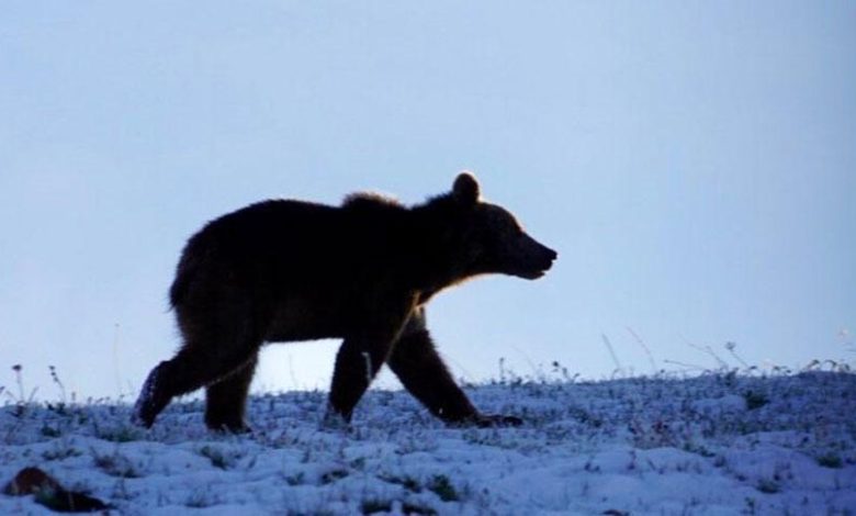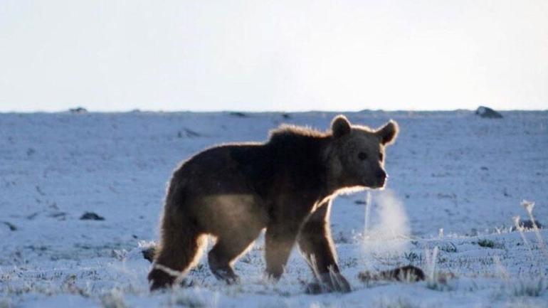 Damal-Posof-Türkgözü yolu üzerindeki 2550 rakımlı Ilgar Dağı geçidinde ortaya çıkan boz ayı, Karip Cankan tarafından görüntülendi.
