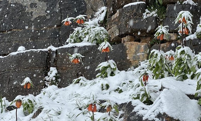 İlçenin Tanin Dağları’nda doğal olarak yetişen, halk ortasında “ağlayan gelin” yahut “hüzün çiçeği” olarak bilinen aksi laleler, baharın gelişiyle açtı. Havaların soğumasıyla kar yağışının tesirli olduğu bölgede karşıt laleler beyaz örtüyle kaplandı.