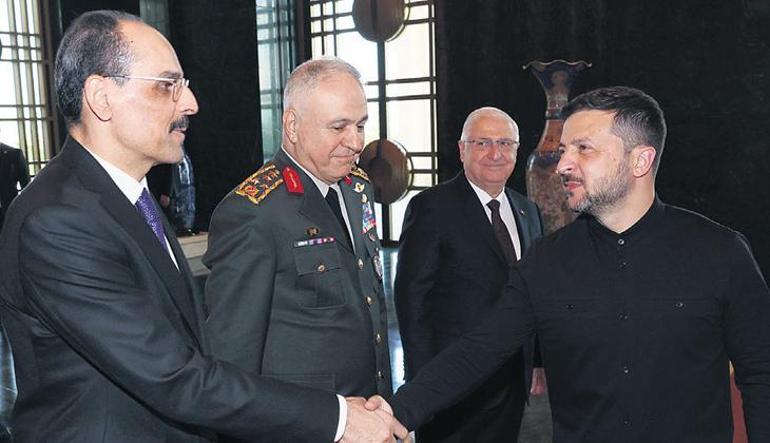 Zelenskiy; Milli Savunma Bakanı Yaşar Güler, Genelkurmay Başkanı Metin Gürak, MİT Başkanı İbrahim Kalın, Cumhurbaşkanlığı Bağlantı Lideri Fahrettin Altun, Cumhurbaşkanı Dış Siyaset ve Güvenlik Başdanışmanı Akif Çağatay Kılıç ile selamlaştı.