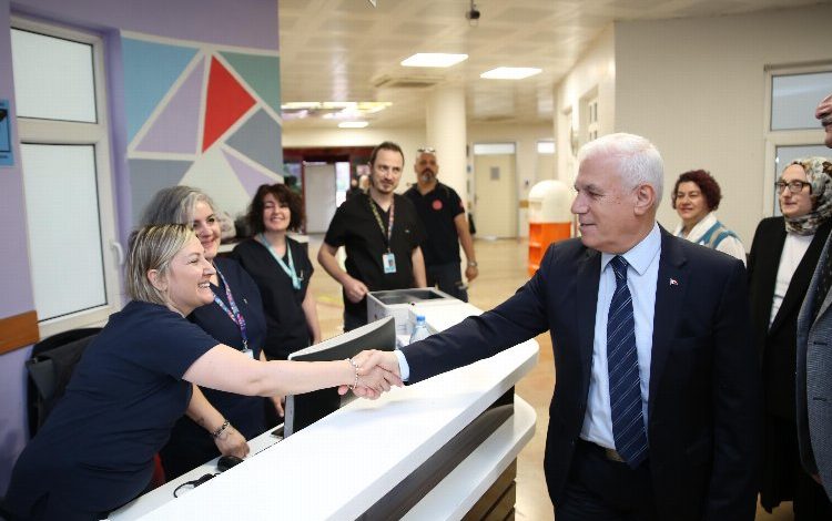 Daha sonra tedavi gören hastalarla ve hasta yakınlarıyla buluşan Başkan Bozbey, tedavi süreçleri hakkında bilgi alarak geçmiş olsun dileklerini iletti.