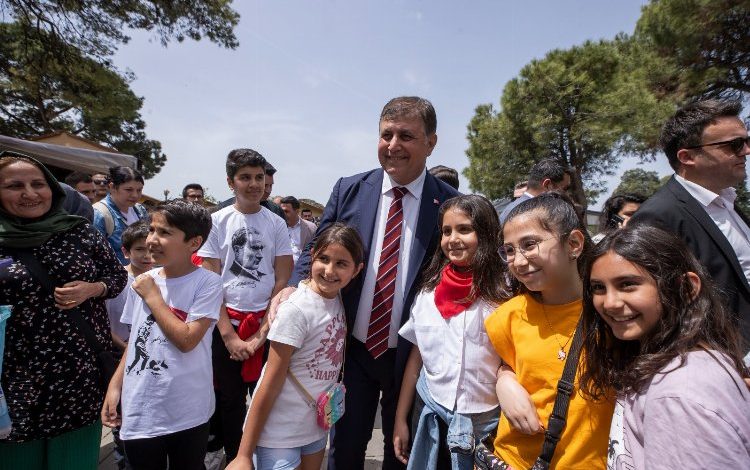 İzmir Büyükşehir Belediye Başkanı Dr. Cemil Tugay, ulu önder Mustafa Kemal Atatürk’ün tüm dünya çocuklarına miras bıraktığı 23 Nisan Ulusal Egemenlik ve Çocuk Bayramı’nda Kültürpark’ta düzenlenen Çocuk Şenliği’ne katıldı. Miniklerin bayramını kutlayan, fotoğraf çektirmek isteyen ailelerle bir araya gelen Başkan Cemil Tugay, “Bu sene 23 Nisan Ulusal Egemenlik ve Çocuk Bayramı ile TBMM’nin açılışının 104’üncü yıl dönümünü kutluyoruz. Umarım önümüzdeki yıllarda bu güzel çocuklar çok daha güzel günler yaşasınlar. Şenliğimiz de her sene bir öncekinden güzel olsun” diye konuştu.