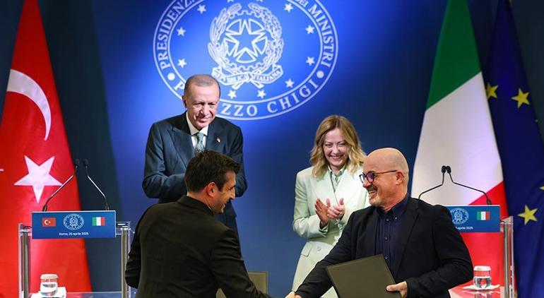 Cumhurbaşkanı Erdoğan ve Başbakan Meloni’nin huzurunda gerçekleşen merasimle, Mart ayında imzalanan İtalya’da ortak insansız hava araçları geliştirme ve üretimi ile yüksek teknoloji alanında iş birliğini öngören muahedenin evrakları resmi olarak değiştirildi.
