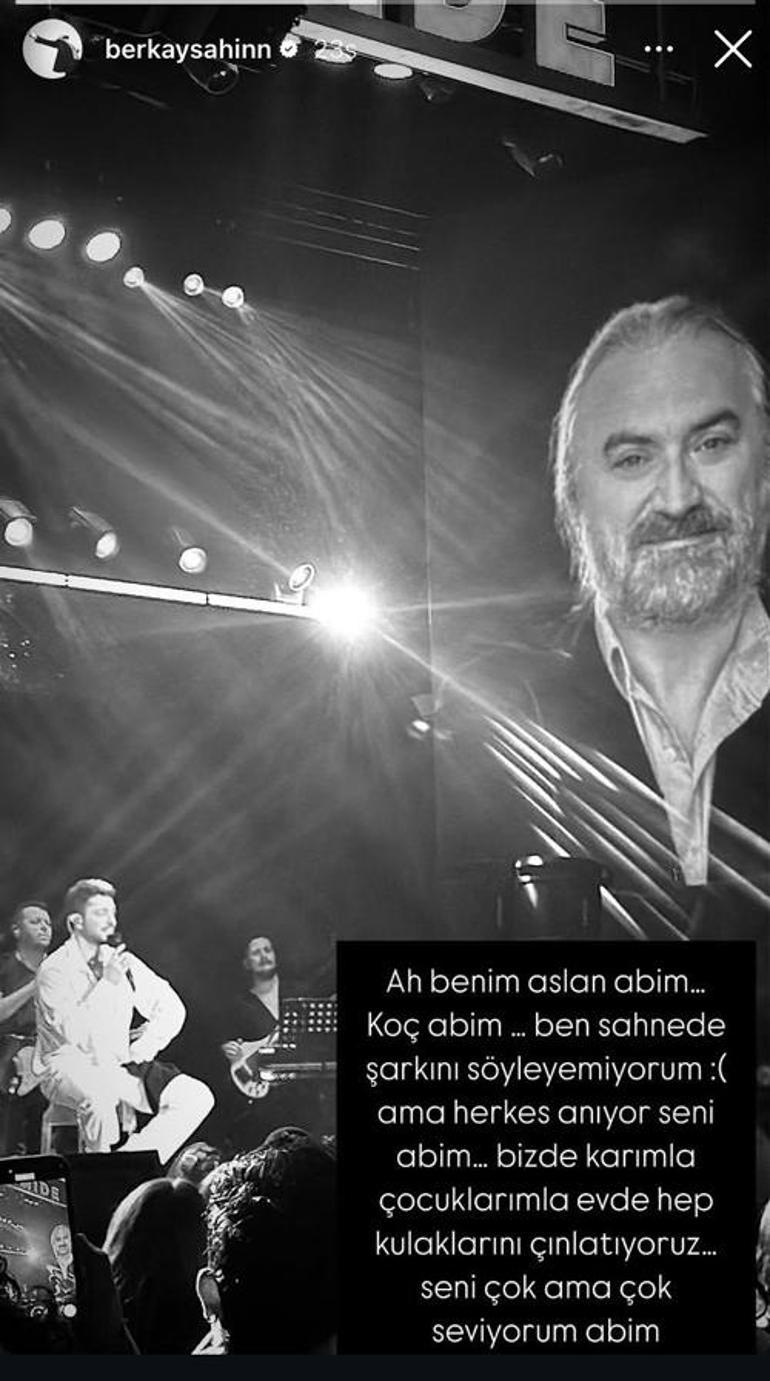 Daha evvel yaptığı paylaşımla, Volkan Konak’ın kendisine el uzattığını belirten Berkay Şahin bu defa Murat Boz’a göndermede bulundu. Murat Boz’un sahnede Volkan Konak’ın müziklerini söylemesiyle ilgili paylaşım yapan Berkay Şahin, “Ah benim aslan ağabeyim… Koç ağabeyim… Ben sahnede şarkını söyleyemiyorum fakat herkes anıyor seni ağabeyim. Biz de karımla, çocuklarımla meskende daima kulaklarını çınlatıyoruz… Seni çok çok seviyorum ağabeyim.” dedi.