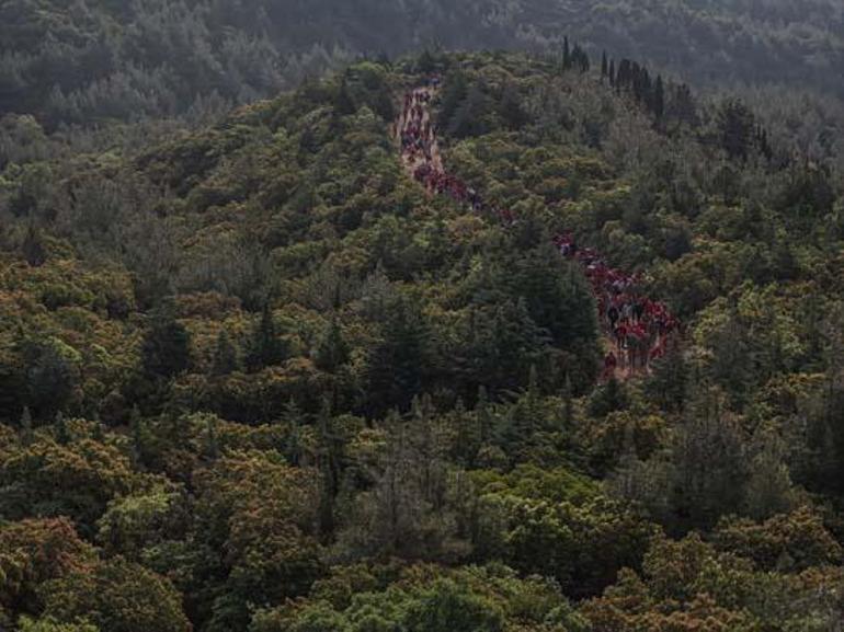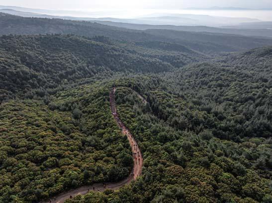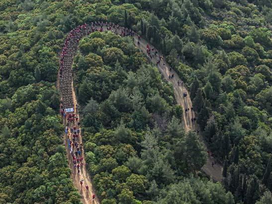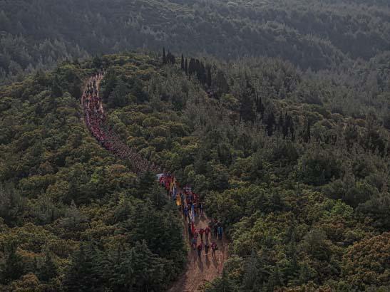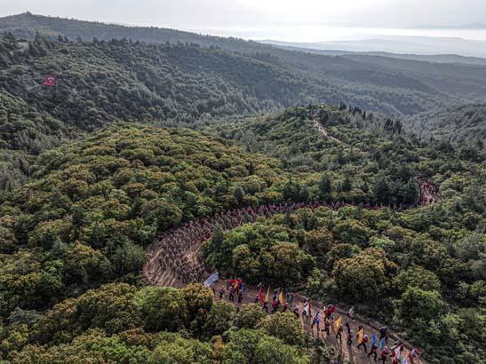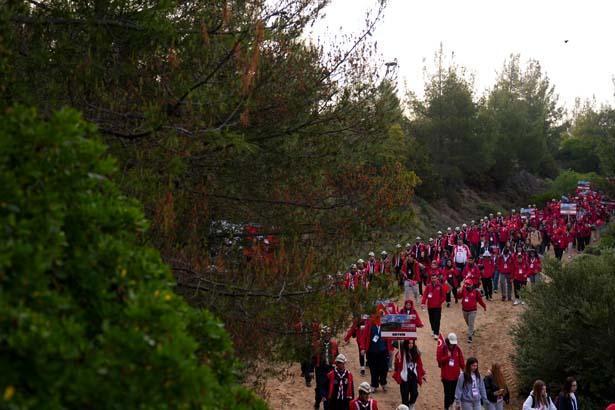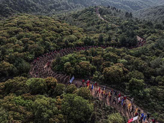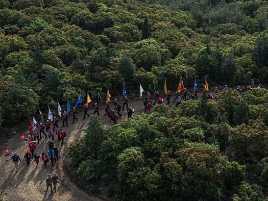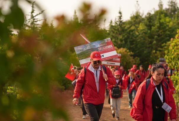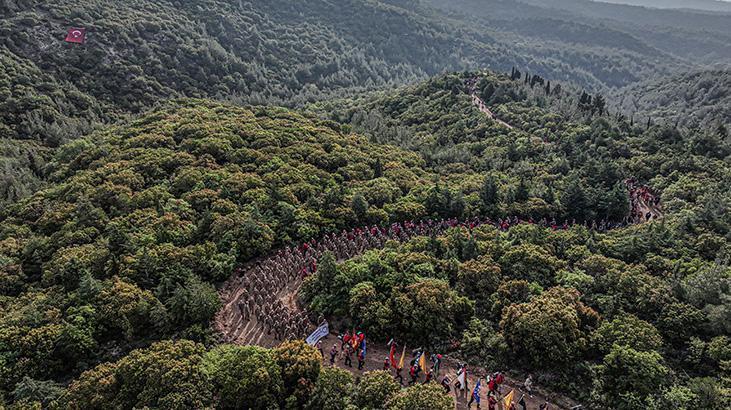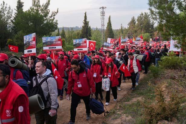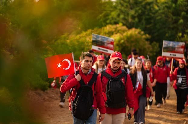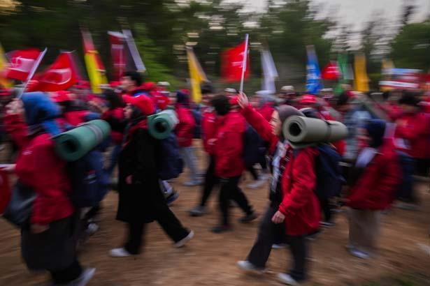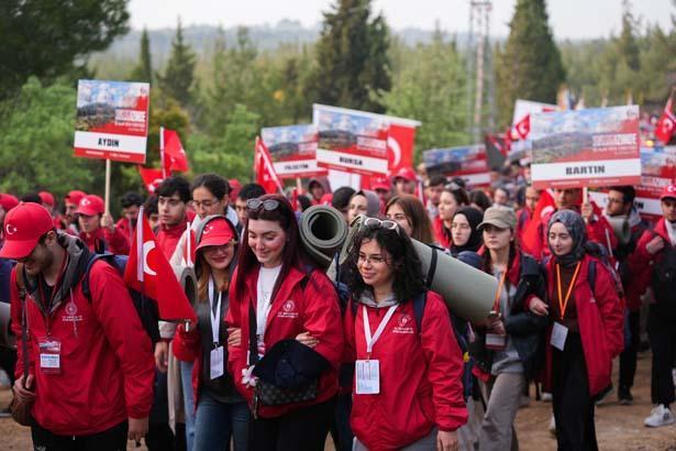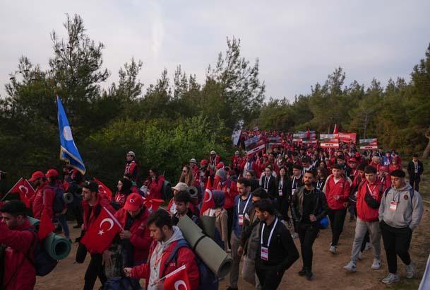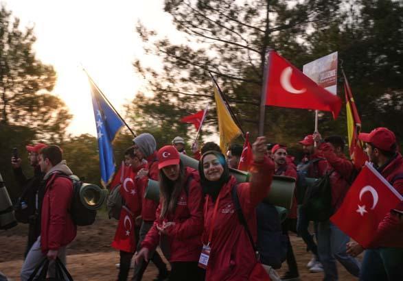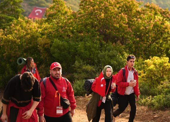 Gençlik ve Spor Bakan Yardımcısı Safa Koçoğlu eşliğindeki yaklaşık 3 bin kişilik küme, yaklaşık bir saatlik yürüyüşün akabinde Conkbayırı’ndaki merasim alanına vardı.