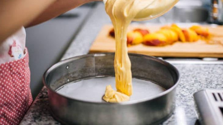 Borcamı yavaşça yağladıktan sonra hamuru içine dökün ve kabarcıkları yok etmek için tezgaha 2-3 kere vurun. Evvelce ısıtılmış 170 derece fırında yaklaşık 30 dakika pişirin. Pişen keki fırından çıkarıp oda sıcaklığında soğumaya bırakın. Akabinde muhallebiyi hazırlayabilirsiniz.