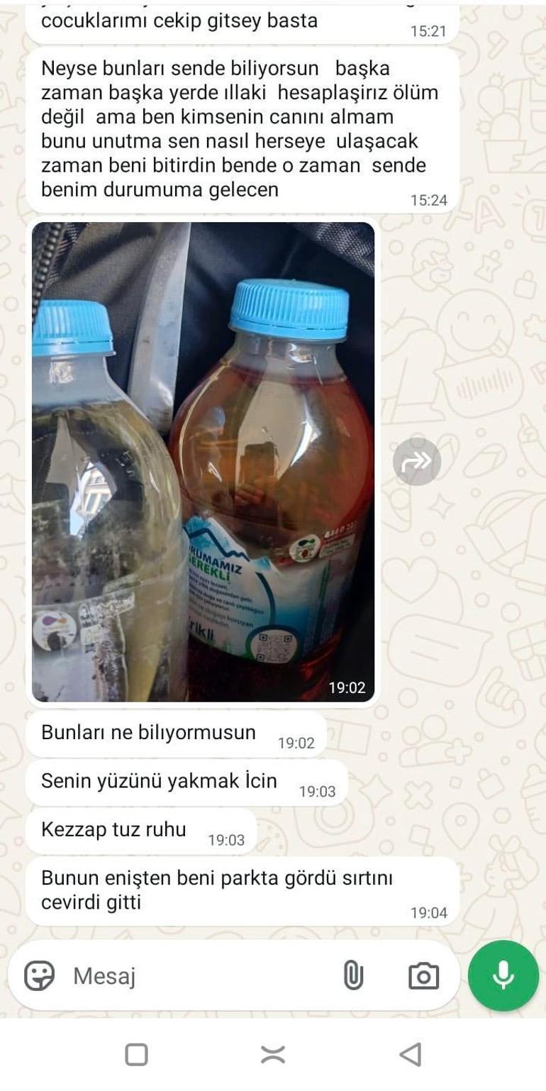Olayla ilgili konuşan Ayşe Karslıoğlu, “Ben Hakan K. ile 11 yıl evli kaldım. Hakan K. ile 5 yıldır başkayız. 2022 yılından beri süren bir boşanma davamız var. 9 Mayıs’ ta davada karar çıktı. Kendisi sürtüşmeye girdiği için İstinaf Mahkemesine taşıdı. Bu süreç içerisinde ben Hakan K.‘den daima tehdit, küfür ve hakaretlere maruz kalıyorum. Daima şikayet ediyorum ve adliyelere gidip geliyorum ancak kendisinden bir türlü kurtulamıyorum. Bir müddettir yüzümü yakmakla tehdit ediyor. Bu tehditle psikolojimi alt üst etmiş durumda. Ben ailemle yaşamaktayım. Bugün ailemin konutuna gelerek camda babamla konuşup onu oyalayıp dışarı çağırıyor. Babam ona güvenip dışarıya çıkmıyor. Babam dışarıya çıkmadığı için babamın yüzüne kezzap atıyor. Kız kardeşim siper oluyor o da kollarından yaralanıyor. Ben konutta olsaydım o kezzap suyuyla benim yüzümü yakacaktı” dedi.