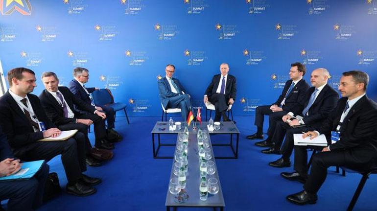 Görüşmenin detaylarını İrtibat Başkanlığı paylaştı; Cumhurbaşkanımız Sayın Recep Tayyip Erdoğan, Avrupa Siyasi Topluluğu Tepesi için gittiği Arnavutluk’ta Almanya Başbakanı Friedrich Merz’i kabul etti.