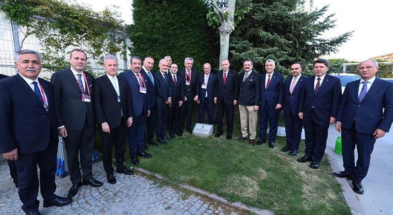 Cumhurbaşkanı Erdoğan merasim öncesi, 69. TOBB Genel Kurulu anısına 2013 yılında diktiği ağacı suladı.