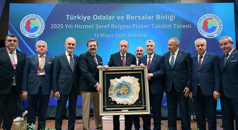 Cumhurbaşkanı Recep Tayyip Erdoğan, TOBB İkiz Kuleler’de TOBB Hizmet Gurur Evrakı ve Plaket Töreni’nde açıklamalarda bulundu. Erdoğan’ın açıklamaları özetle şöyle: Her yıl mayıs ayında gerçekleştirdiğimiz bu merasim, bu ülkenin büyümesi ve kalkınmasının bilinmeyen kahramanlarına bir vefa borcudur. Hizmet onur evraklarını almaya hak kazanan üyelerimizi tebrik ediyorum. Bu milletin iyiliği için ter döktüler. Sadakatin yanı sıra fedakarlığın simgesi olan bu plaketin iyi olmasını diliyorum.