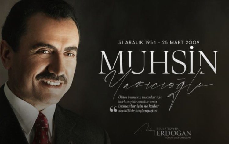 “Vefatının 15’inci yıl dönümünde Muhsin Yazıcıoğlu kardeşimi rahmetle yâd ediyorum. Merhum Yazıcıoğlu’nu her zaman cesaretiyle, yiğitliğiyle, dava adamlığıyla ve millî irade yanındaki sarsılmaz duruşuyla hatırlayacağız. Ruhu şad, mekânı cennet olsun.”
