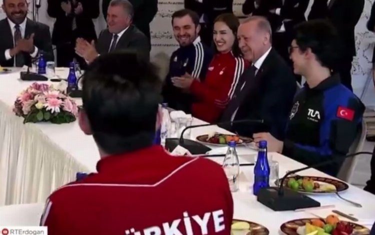 Erdoğan, 2024 Paris Olimpiyatlarına katılacak milli sporculardan madalya sözü aldı. Buluşma, Erdoğan ile sporcular arasındaki diyaloglar ve genç müzisyenlerin performansıyla renklendi.