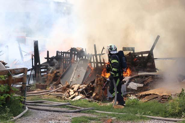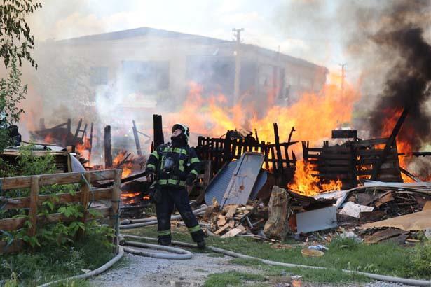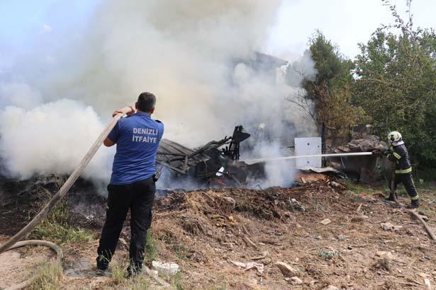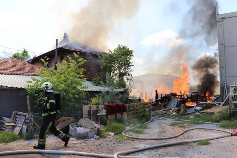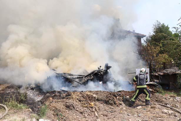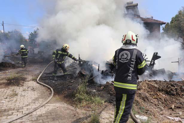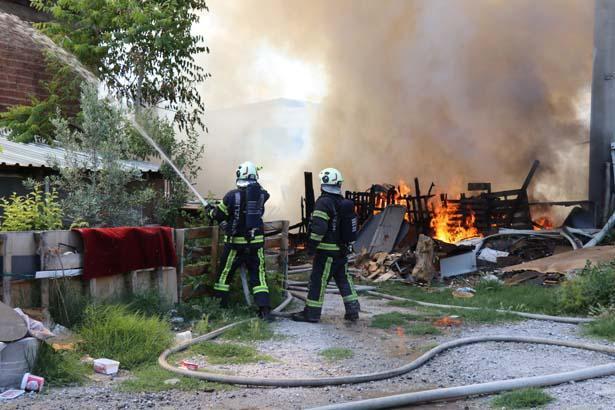 İtfaiye takımları bir yandan yanan meskene öteki yandan ise bahçede alevlenen odunlara müdahalede bulundu.