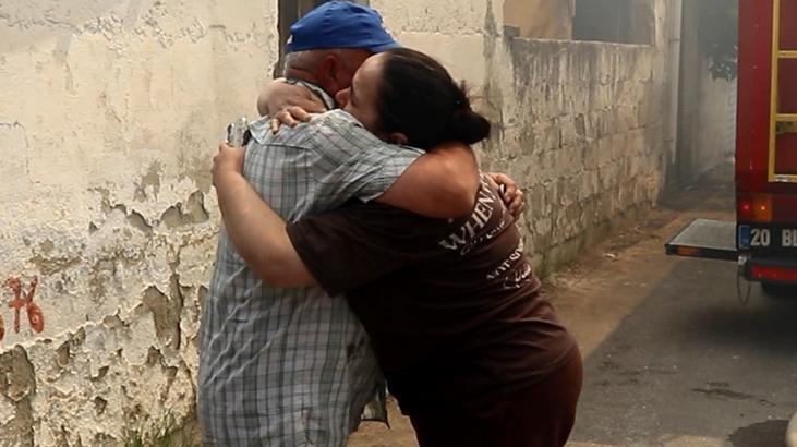 Ailesinin konutunun yandığı haberini alır almaz adrese gelen bir bayanın feryatları ise dikkatlerden kaçmadı. Karşısında babasını görünce rahatlayan bayan sevinçle babasına sarıldığı ve annesinin durumunu sorduğu görüldü.
