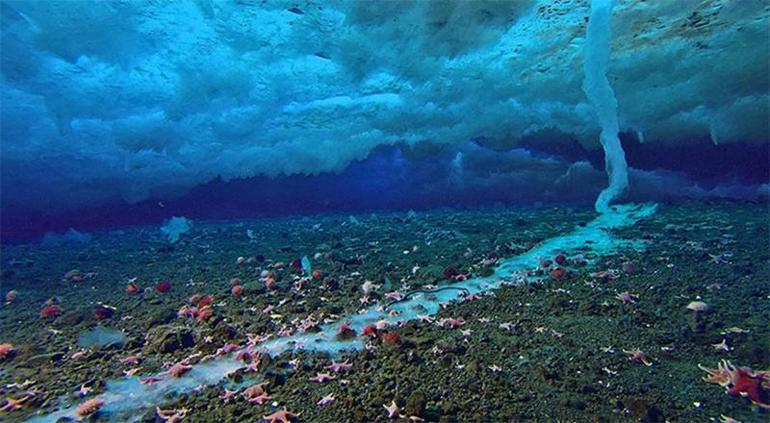 Buz sarkıtı olarak da bilinen tuzlu su sarkıtı deniz tabanına ulaştığında yayılmaya devam ederek tabanı ve üzerindeki her şeyi dondurabilir.