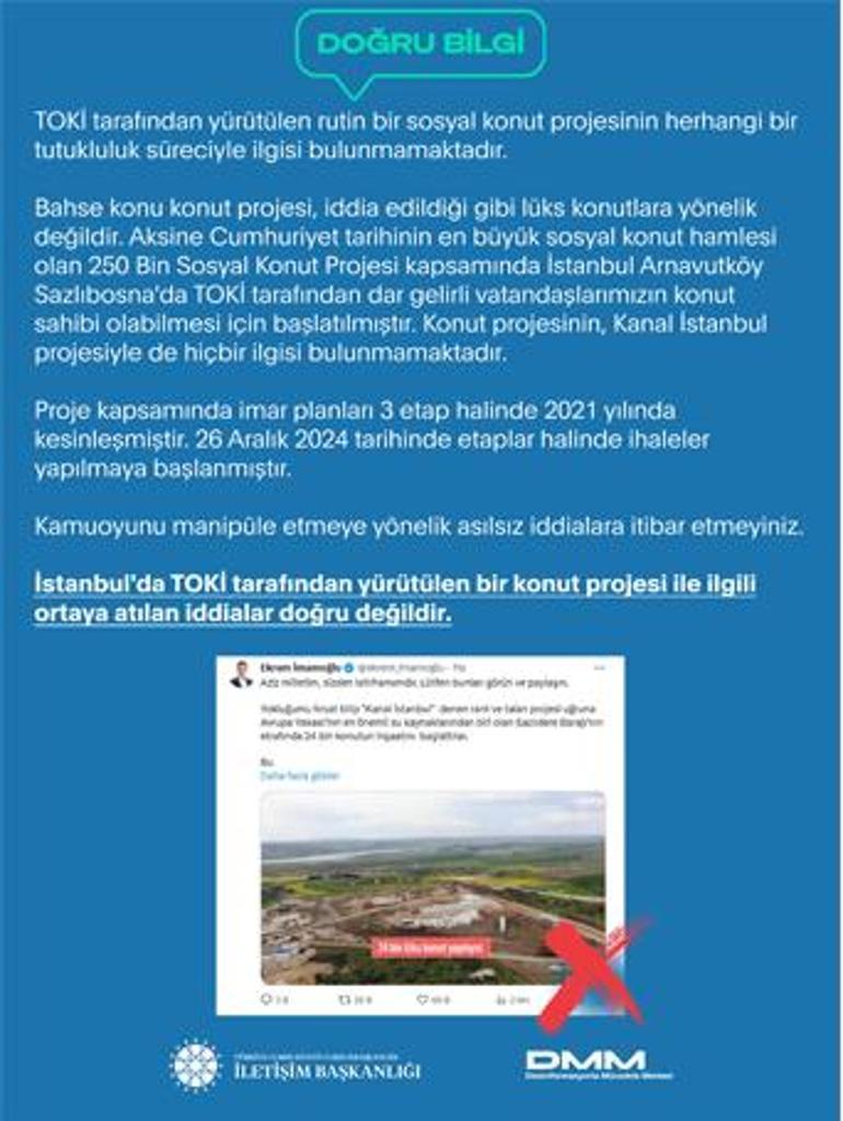 İstanbul’da TOKİ tarafından yürütülen bir konut projesi ile ilgili ortaya atılan tezler hakikat değildir.