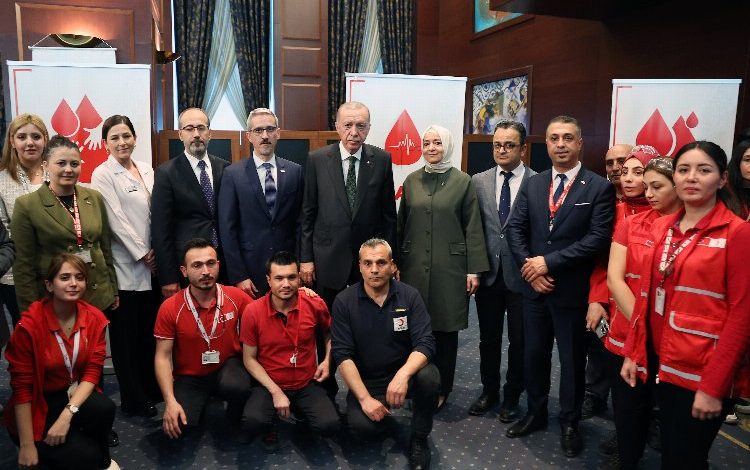 Cumhurbaşkanı Erdoğan, AK Parti’de kan bağışı kampanyasına katılanları ziyaret etti