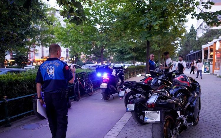 Atatürk Bulvarı üzerinde gerçekleşen denetimlerde motosikletlerini kaldırıma park eden sürücülere Kabahatler Kanunu’na göre cezai işlem yapıldı.