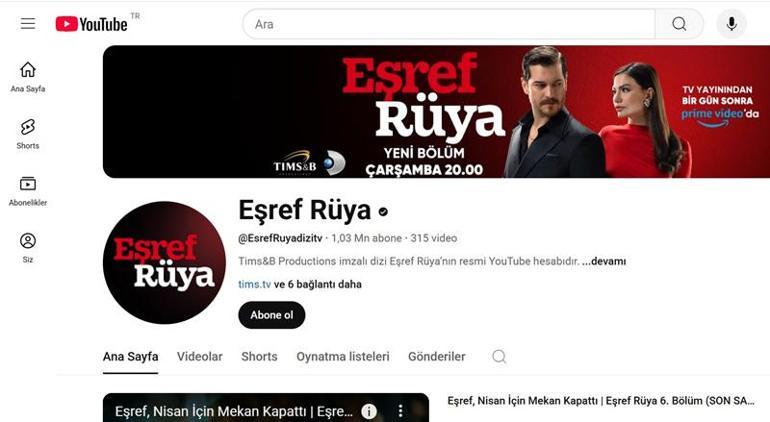 Tims&B imzalı Eşref Hayal, reyting muvaffakiyetini toplumsal mecra ile de taçlandırdı. Çağatay Ulusoy ve Demet Özdemir’i birinci kere tıpkı projede buluşturan sevilen dizi, Youtube’da dört haftada 1 milyon aboneye ulaştı. Youtube’a yüklenen birinci dört kısmı 86 milyon kere izlenen Eşref Rüya’nın yalnızca dört görüntüyle ulaştığı abone ve izlenme sayısı, dizinin yarattığı etkiyi gözler önüne serdi.