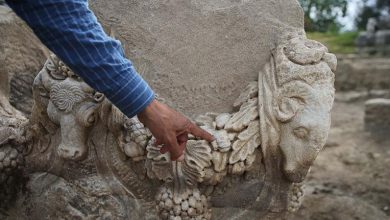 ‘Gladyatörler kenti’ Stratonikeia’da girlandlı lahit bulundu