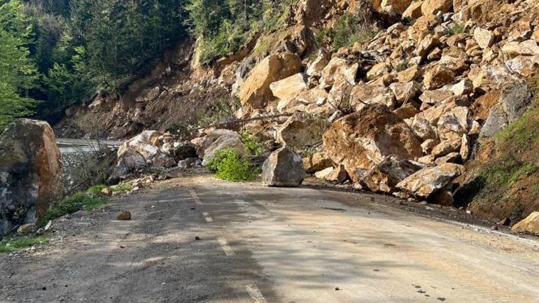 Giresun’da gece yaşanan heyelan nedeniyle Yavuzkemal Beldesi yolu ulaşıma kapandı.