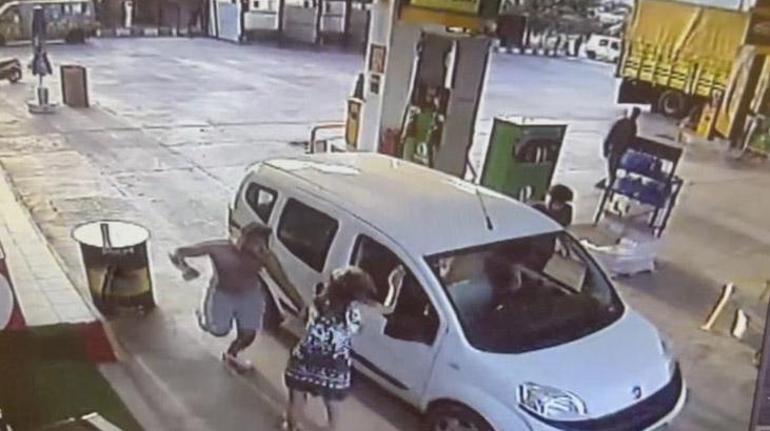 Akaryakıt istasyonundaki şiddet olayı, iş yerinin güvenlik kamerasına saniye saniye yansıdı. Manzaralarda, P.D. pompaların bulunduğu kısımda hafif ticari araçta bulunan bir kişi ile tartışırken gelen bir diğer erkek, bayanı darbediyor. P.D. akaryakıt istasyonunda bulunan markete girerek korunmaya çalıştığı sırada, akabinde gelen kişi, P.D.’ye burada da şiddet uyguluyor. P.D.’nin tüm uğraşına karşın uğradığı tekme ve yumruklu saldırısı güvenlik kamerasına saniye saniye yansıdı.