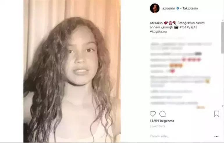 Azra Akın’ın Instagram hesabı üzerinden paylaştığı fotoğrafa “Fotoğrafları canım annem çekmişti. #tbt #yaş12 #küçükazra” notunu yazmıştı.