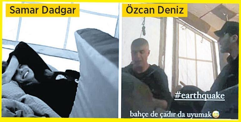 Lüks villasının bahçesinde kurduğu çadırda eşi Samar Dadgar ve arkadaşlarıyla kalan Özcan Deniz, o anları Instagram’dan takipçileriyle paylaştı. Çocuklarıyla birlikte çadırda sabahlayan Wilma Elles de, “Önlemler hayat kurtarır” notuyla hayranlarına davette bulundu. Sarsıntıya AVM’de yakalanan Bengü, gece uyuyamadığını söyleyerek, “Çocukları uyuttum, nöbetteyim ben. En berbatı bu olsun” kelamlarıyla tedirginliğini lisana getirdi. Zelzeleye uykuda yakalanan Ece Seçkin ise, tuzla buz olan mükafatlarını paylaşarak, “Sabaha karşı takımca Mersin’den İstanbul’daki konutlarımıza geldik. Rastgele bir can kaybı olmadığı için şükrediyorum. Konutta bir tek mükafatların olduğu cam vitrin patladı… Yılların mükafatları kırıldı, kalbim de o denli…” sözlerini kullandı.