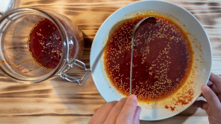 Küçük bir fırın kabını yağlı kâğıtla kaplayın yahut yavaşça yağlayarak başlayın. Küçük bir tencereye balı, tereyağını ve şekeri alın ve kısık ateşte karıştırarak bal büsbütün eriyip hafif kabarcıklar çıkarana kadar ısıtın. Şeker kullanıyorsanız eriyene kadar devam etmelisiniz. Altını kapatıp çabucak içine kavrulmuş susamları ekleyin ve süratlice karıştırmalısınız. İsterseniz bu kademede tarçın yahut vanilya da ekleyebilirsiniz.
