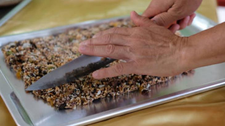 Hafifçe kabarcıklar oluştuğunda ocağı kapatma vakti gelmiş demektir. Barları keserken hala çok sıcak olduğunu düşünüyorsanız biraz daha bekleyebilirsiniz. Tam sertleştikten sonra kesmek en hakikat seçim olacaktır. Hava almayan bir kapta saklarsanız, susamlı barlar 1 hafta boyunca çıtır kalacaktır. Şayet daha yumuşak bir bar isterseniz, tereyağı ölçüsünü biraz artırabilirsiniz.