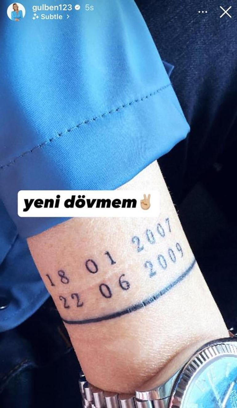 Instagram hesabından paylaşım yapan Gülben Ergen koluna iki farklı tarih yazdırdı. Bir tarih 18 Ocak 2007’ye başka tarih 22 Haziran 2009’a aitti.