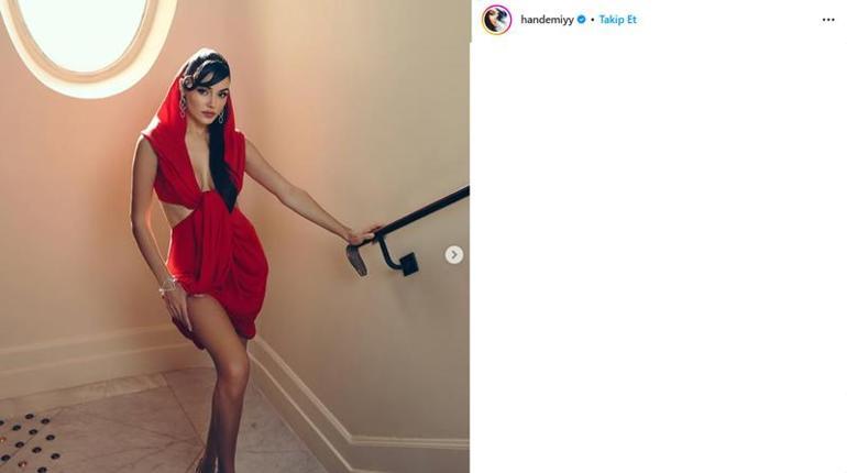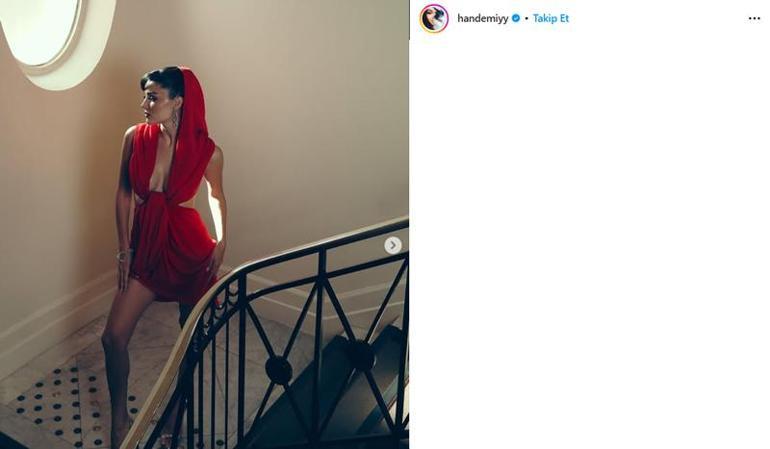 Şimdilerde Cannes’da olan Hande Erçel, kıyafetleriyle konuşulmaya devam ediyor. Instagram hesabından peş peşe paylaşımlar yapan Erçel bu sefer kırmızılar içerisinde poz verdi.