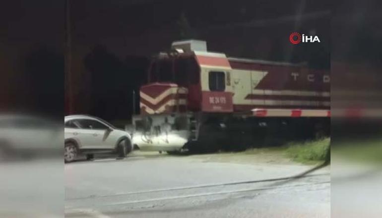 Hemzemin geçitte tren ile araba baş başa çarpıştı