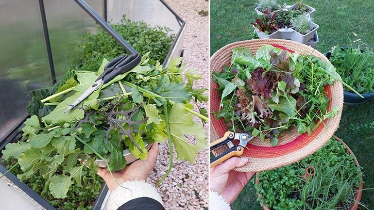 Evde tek bir saksıda farklı çeşitlerde salata gereçleri yetiştiren Nevra, “Doğada bitki örtüsü bir ahenk içinde bulunuyor. Her şey taban tabana birbirlerine takviye vererek, ahenk içinde yaşıyor. Tabiatta monokültür yok, çeşitlilik var. Benim biçimimde da çeşitlilik ve sık dikim bulunuyor. Toprağım varlıklı ve sık dikime uygun. İnsanların İstanbul’da zati dar alanları var. Ben de dar alanda en çok ne yetiştirebilirim onun peşindeyim. Bir leğen de buna bir örnek. 40 litrelik bir leğende 20’ye yakın bitki yetiştirdim. İnsanların da çok güzeline gitti. İsmini da salata saksısı koydum” diyerek anlatıyor leğendeki salata saksının ortaya çıkış öyküsünü.