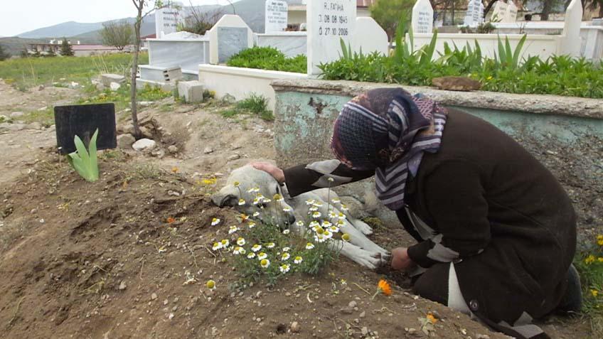 “Biz çocukları olarak İstanbul’da yaşıyoruz. Babamla yaşayan tek dostu Garip’ti. Babamın yalnızlığına ortak oluyordu. Babamızı defnettiğimiz günden beri gece gündüz burada yatıyor. Biz Yasin Suresi’ni okuyup ağladığımızda, başını omzuma koyup ayağıyla yanağımı sildi. Ne vakit ağlasam birebirini yapıyor. Komşumuz yıllar evvel İstanbul’a gidince Garip’i bırakmış. Babam da Garip’i aç görünce yemek vermiş. O günden bu yana babamla bir arada.”