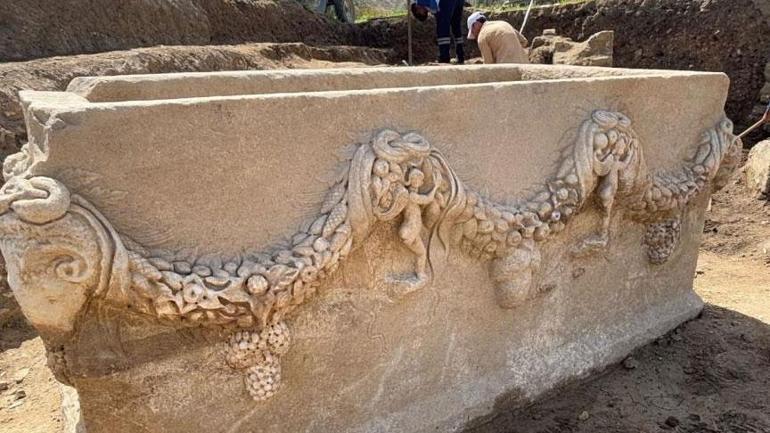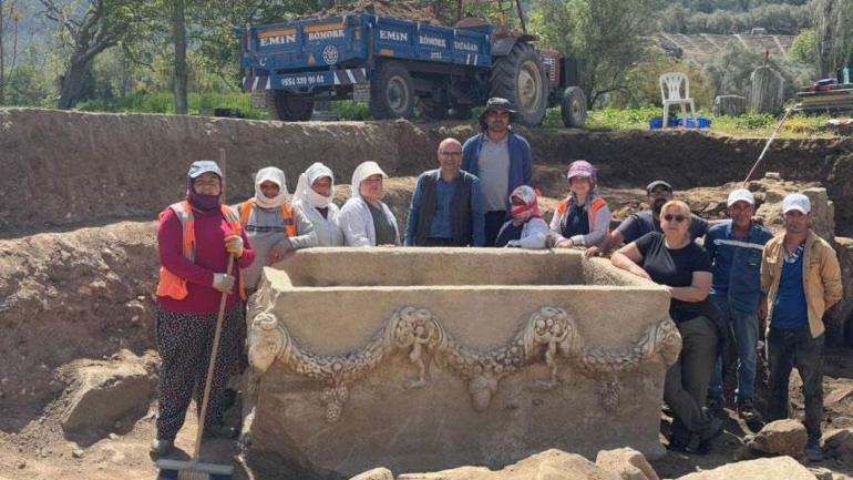 “Antik devirde Stratonikeia’nın bir lahit üretim merkezi olduğu düşünülmektedir” diyen Söğüt, “Roma Hamamı, bouleuterion (Meclis Binası) ve Gymnasion (Spor Okulu) üzere yapıların bulunduğu yerden, tiyatroya giden yol üzerinde, agora (etrafında kamu binalarının bulunduğu kentle ilgili politik, dini, ticari her türlü faaliyetin gerçekleştiği yapı) olduğu düşünülen yerde 2025 yılında hafriyatlar ağırlaştırılmıştır. Burada Erken Yanlışsız Roma (Bizans) Periyodu düzeyinde yapılan çalışmalarda girlandlı (meyve, çiçek ve yapraklardan oluşan çelenk), bir lahit mezar bulundu. Bu lahit antik periyotta kentin nekropol (mezarlık) alanında getirilip burada tekrar kullanılmıştı. Bu lahdin dış kısmında bulunan girlandı köşelerde koç başları orta kısımda boğa başları ve eroslar (antik periyotta aşk tanrısı) taşımaktadır. Girland betimlemeleri çam kozalağı, haşhaş, nar ve üzüm üzere meyveler ile yaprak ve çiçeklerden oluşmakta devrin özelliği olarak olabildiğince gösterişli işlenmiş bir çelenkten oluşmaktadır. Üzerindeki mimari süslemelerine nazaran tarihi daha net olarak belirlenebilmektedir. Stratonikeia antik kentinde daha evvel de lahit ve lahit kesimleri bulunmuştu. Bu kentte bilinen örnekler içerisinde en erken ve en hoş betimlenen örnek durumundadır. Antik periyotta Stratonikeia’nın bir lahit üretim merkezi olduğu düşünmekteydi. Yeni çalışmalarda bulunan eserler bu kanıyı desteklemektedir. Bu lahit alandaki çalışmaları tamamlandıktan sonra antik kent içinde uygun bir alanda sergilenmeye devam edecektir” biçiminde konuştu.