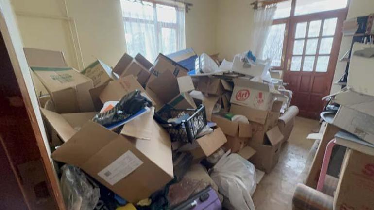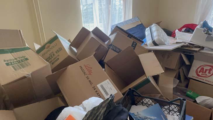 Evin içinden alınan imajlarda, dağınık bir ömür alanı dikkat çekerken, bilhassa bir odada büyük çoğunluğu boş olan içinde kitap dolu olan karton kutuların yer aldığı görüldü. Meskenin genelinde ise çöp yığınlarından çok taşınma sonrası yerleştirilmemiş eşyaların olduğu anlaşıldı.