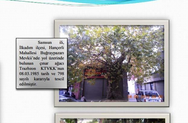 Çevre, Şehircilik ve İklim Değişikliği Bakanlığı tarafından Samsun genelindeki 20 anıt ağaçtan biri olarak tescillenen çınar ağacı, 1985 yılında Trabzon Kültür ve Tabiat Varlıklarını Muhafaza Kurulu’nun kararıyla müdafaa altına alındı. Bakanlığın kayıtlarında, ağacın gövdesi yanmadan evvelki görkemli haline dair fotoğraf ve bilgiler de yer alıyor.