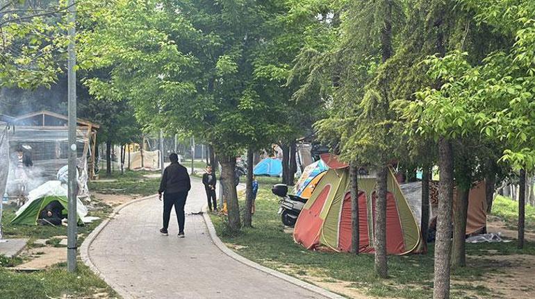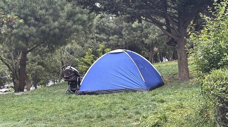Bahçelievler’deki Kuleli Parkı’nda onlarca aile, kurdukları çadırlarda kalıyor.