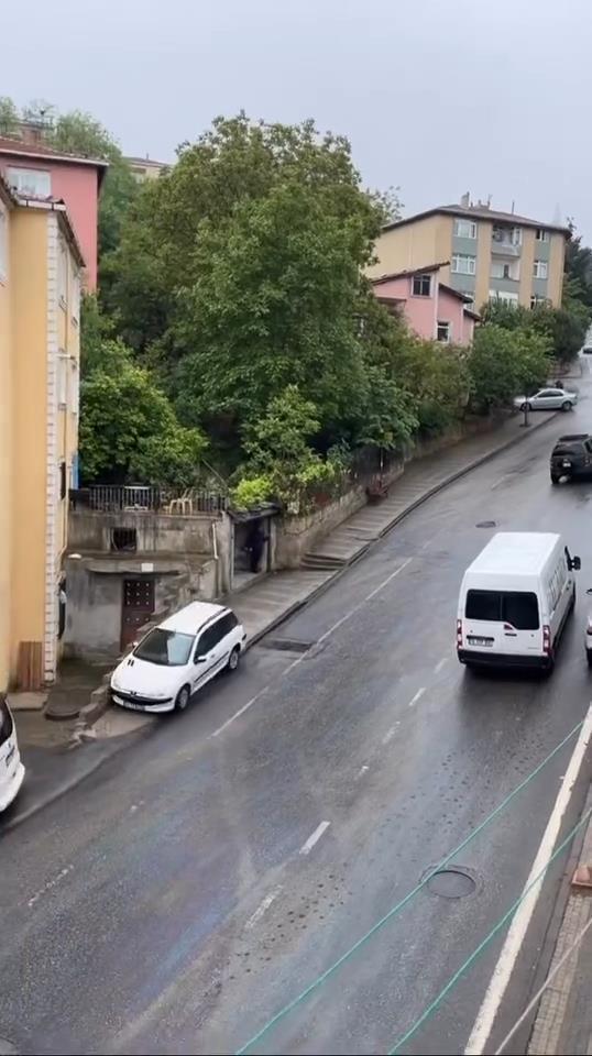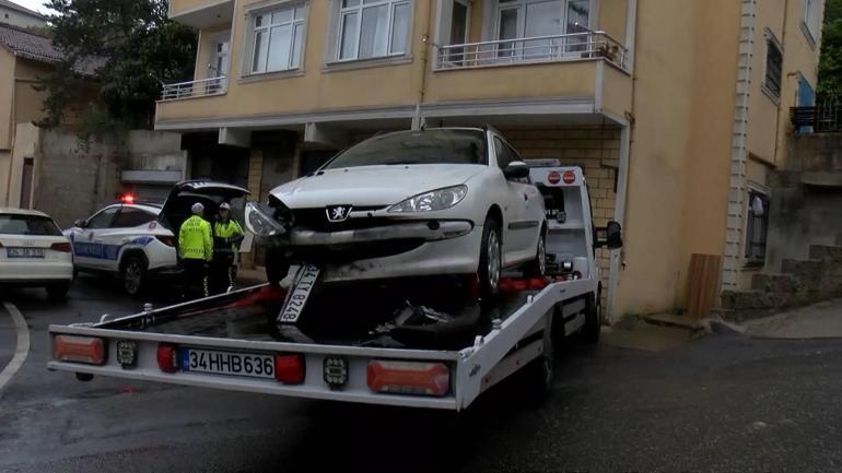 Kaza anı etrafta oturan bir kişinin cep telefonu kamerasıyla saniye saniye görüntülendi. Araba kayganlaşan yolda şoförünün direksiyon hakimiyetini kaybetmesi sonucu evvel kaldırıma çıkıp daha sonra kamyonete çarptıktan sonra binanın duvarına çarparak durduğu görülüyor. (DHA)