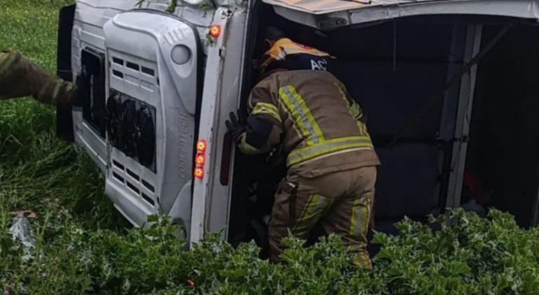Süleyman Z.’nin kullandığı 35 S 02567 plakalı personel servis, İTOB Organize Sanayi Bölgesi yakınlarında denetimden çıkarak devrildi.