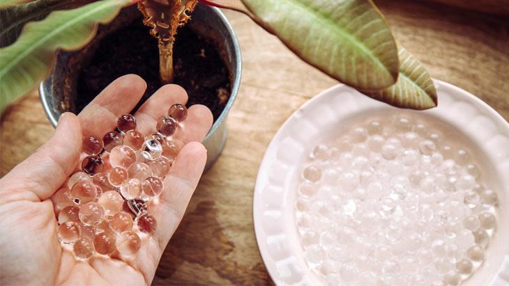 Uzmanlar su depolayan kristallerin, daima nemli toprağı tercih eden, kuraklık gerilimine hassas olan yahut yüksek su muhtaçlığı olan saksıda yetiştirilen bitkilerde kullanılması gerektiğini belirtiyor. Bu bitkiler ortasında eğrelti otları, sabırsız otu, ortancalar, petunyalar ve domates ve biber üzere sebzeler sayılabilir.