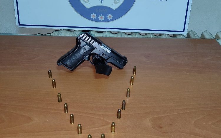 Kontrol sırasında, iş yeri kapısının önünde bekleyen M.O. isimli şahıstan şüphelenildi. Yapılan aramada 1 adet tabanca ve toplam 14 adet dolu fişek ele geçirildi.
