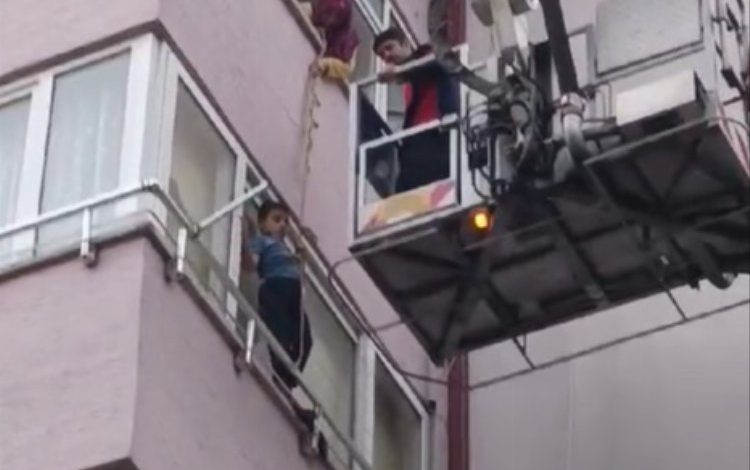 Mahsur kalan çocuğu itfaiye ekipleri kurtardı