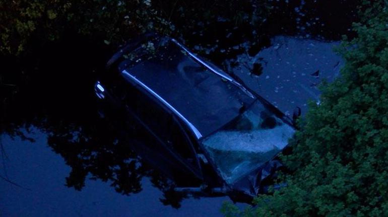 Maltepe’de sabaha karşı feci kaza! Araba gölete uçtu
